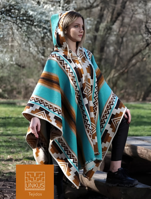Hooded Andean Poncho with Geometric Tribal Motifs – UNKUS Tejidos