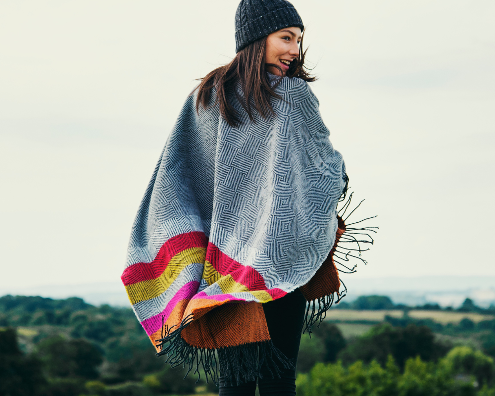 Achetez maintenantChaque poncho est tissé à la main avec soin par des artisans andins. Chaque modèle reflète des générations de tradition.